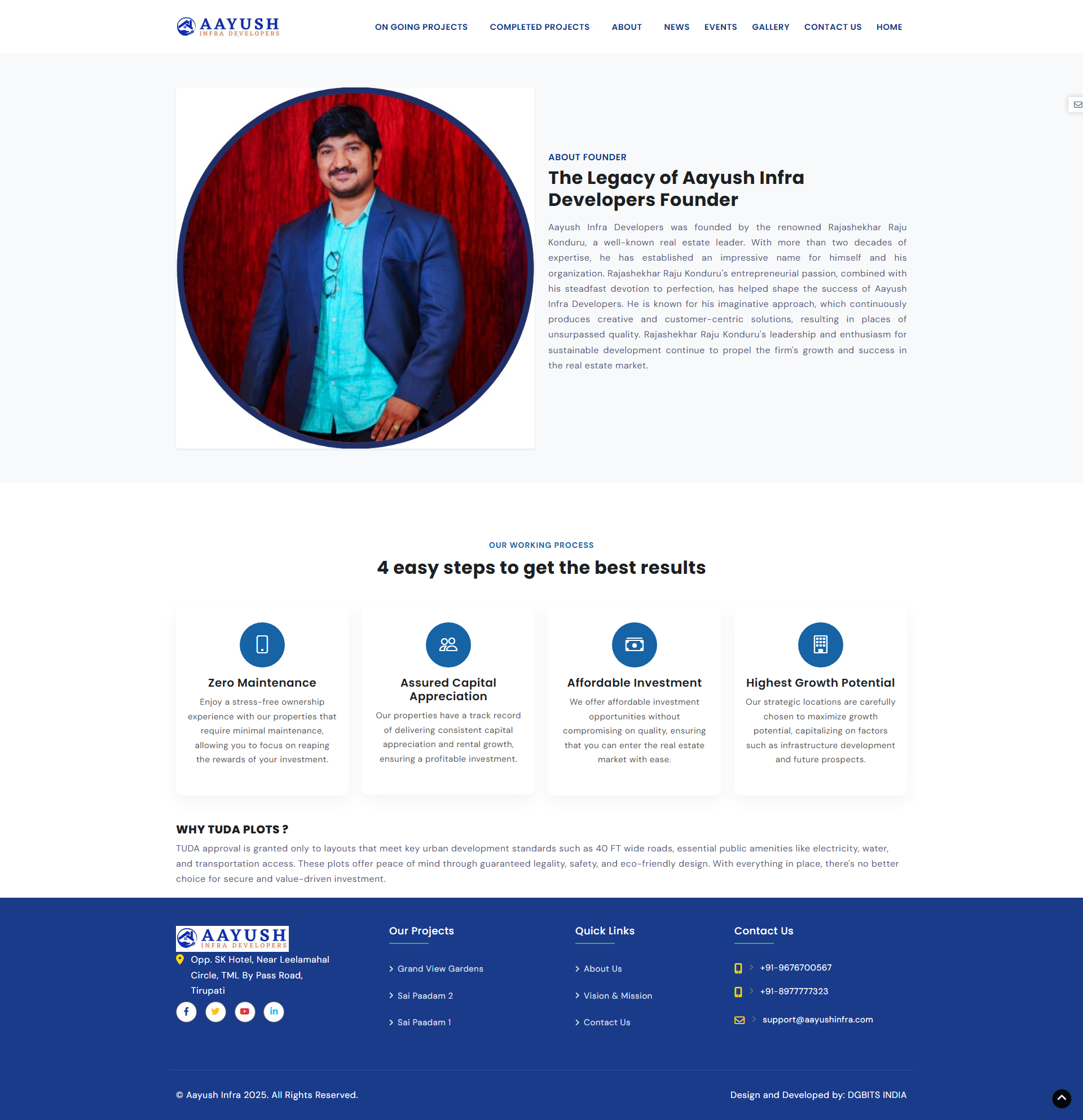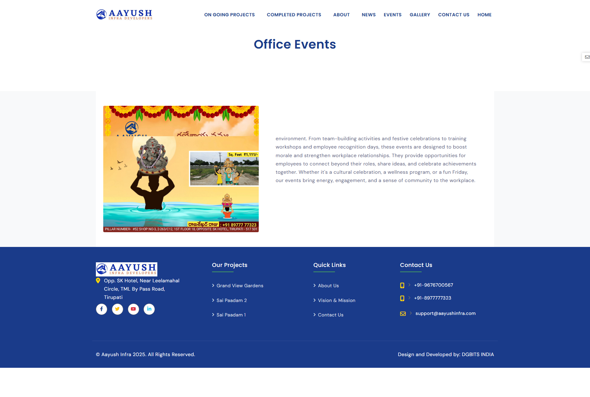 Overview AAYUSHINFRA, a dynamic real estate firm specializing in residential and commercial projects, approached us to revamp their digital presence. They needed a professional, high-performing website to showcase property listings, highlight project details, and streamline client engagement—all while ensuring fast loading speeds, mobile responsiveness, and future scalability.