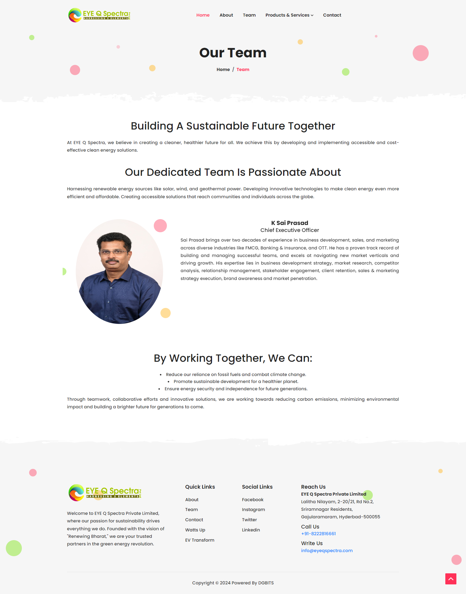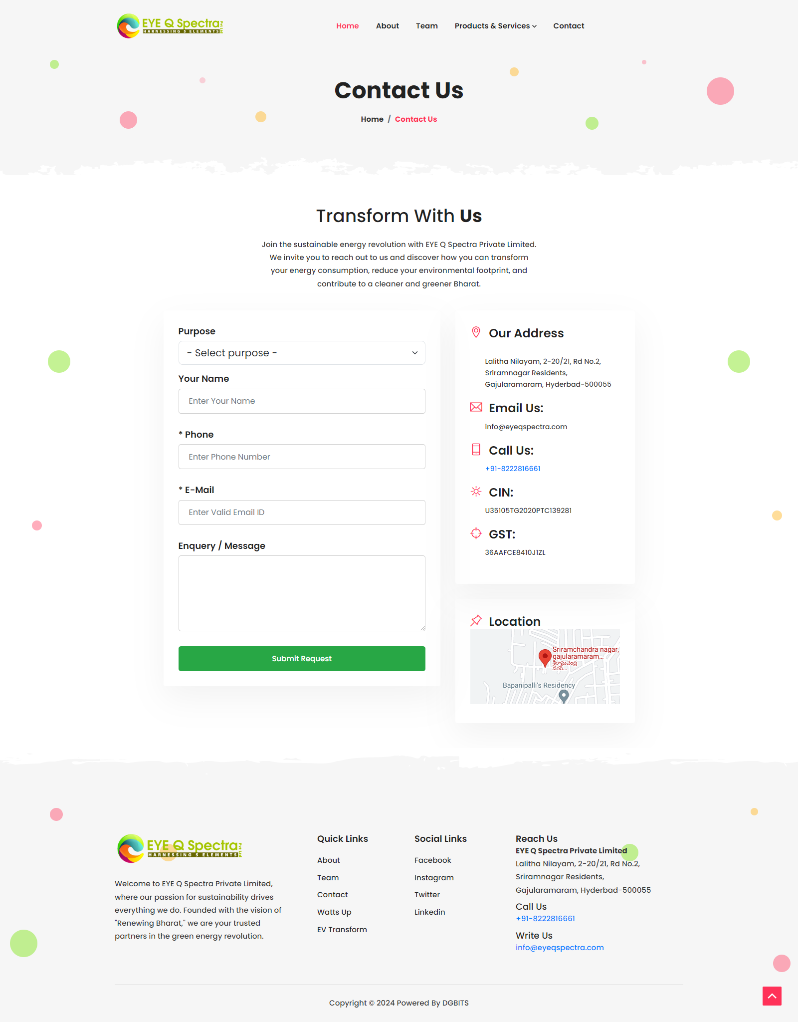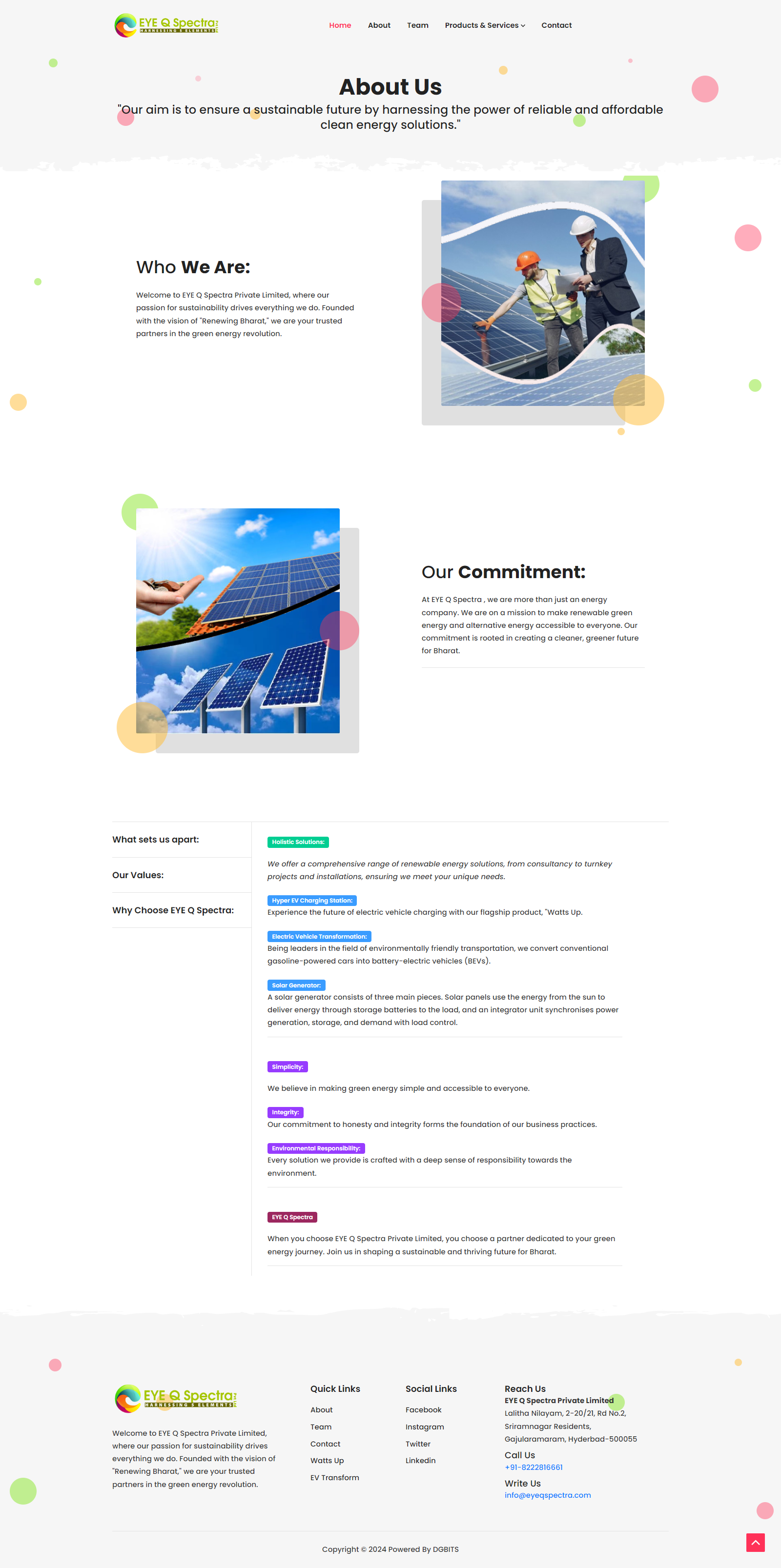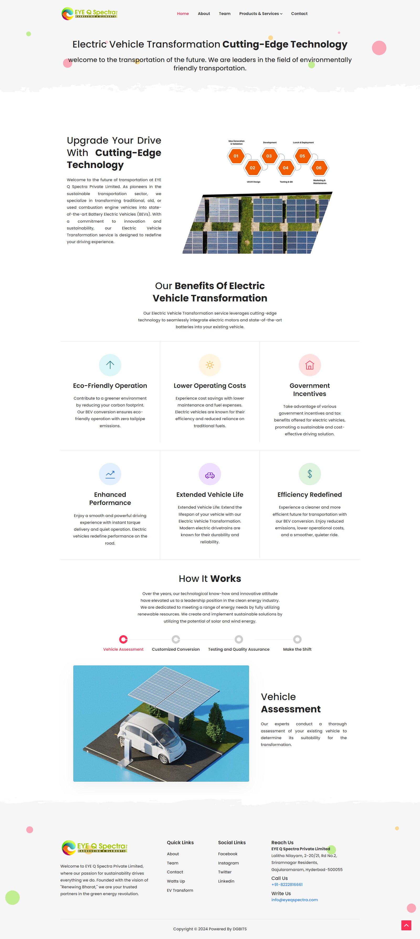 Overview EYE Q Spectraa Private Limited, a forward-thinking company in the renewable energy space, needed a website that could reflect their expertise in green energy solutions and alternative power technologies. Their goal was to educate visitors, showcase completed solar projects, and capture client leads—while ensuring the platform remained scalable and environmentally conscious in its design.