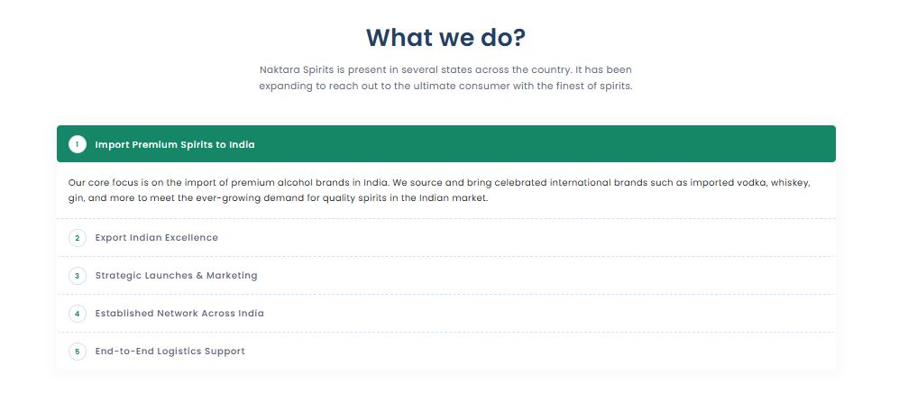Our Solution & Results We crafted a stylish and responsive website using PHP, HTML5, CSS3, Bootstrap 5, and jQuery—focused on delivering a sleek user experience that reflects the brand’s premium nature. The site highlights their whiskey and vodka offerings with vibrant visuals, smooth navigation, and compelling content. Integrated SEO ensures visibility in search engines, while the clean layout supports future scalability. The final platform gives NAKTARA a strong digital foundation to engage customers and expand into new markets with confidence.