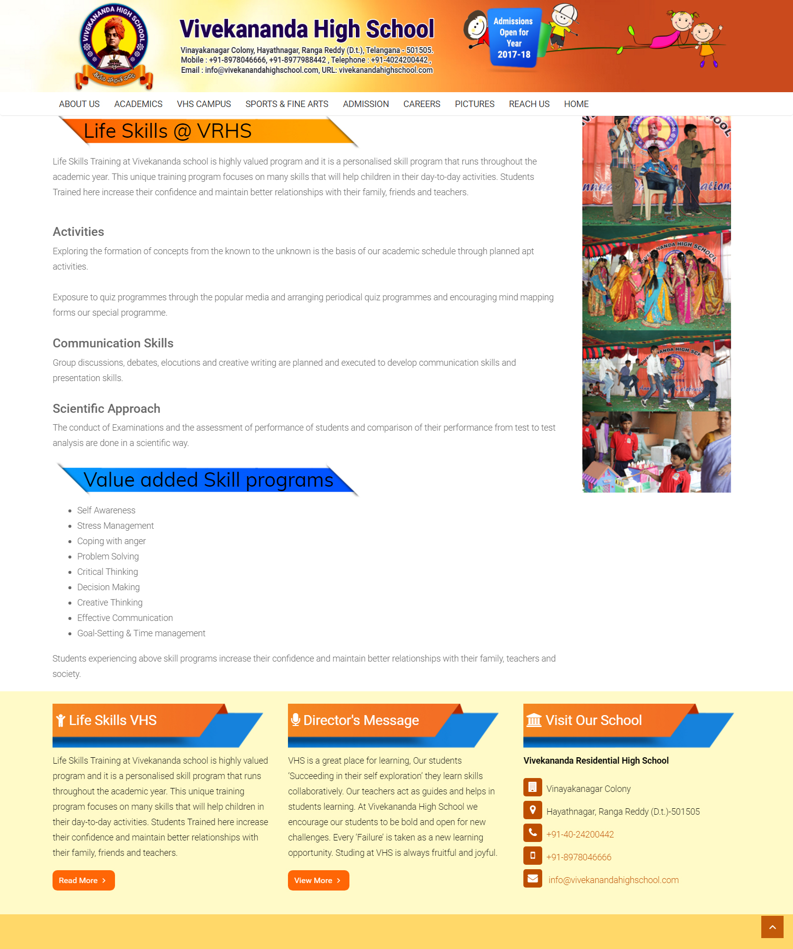 How We Helped We worked with Vivekananda Residential High School to built a new responsive website. The website allows their staff to update the site by themselves when necessary. The types of content they can update are things like Admissions Page, Testimonials, Contact details, Location details, Director Message and much more. We designed VRHS website using the Mobile First technique and progressive enhancement, which make it accessible to a wide range of users. Currently it supports all tablets, desktops, Laptops and mobile smart phones. Congratulations to Vivekananda Residential High School on their new website!. The website does a great job in promoting the Vivekananda School to global audience.