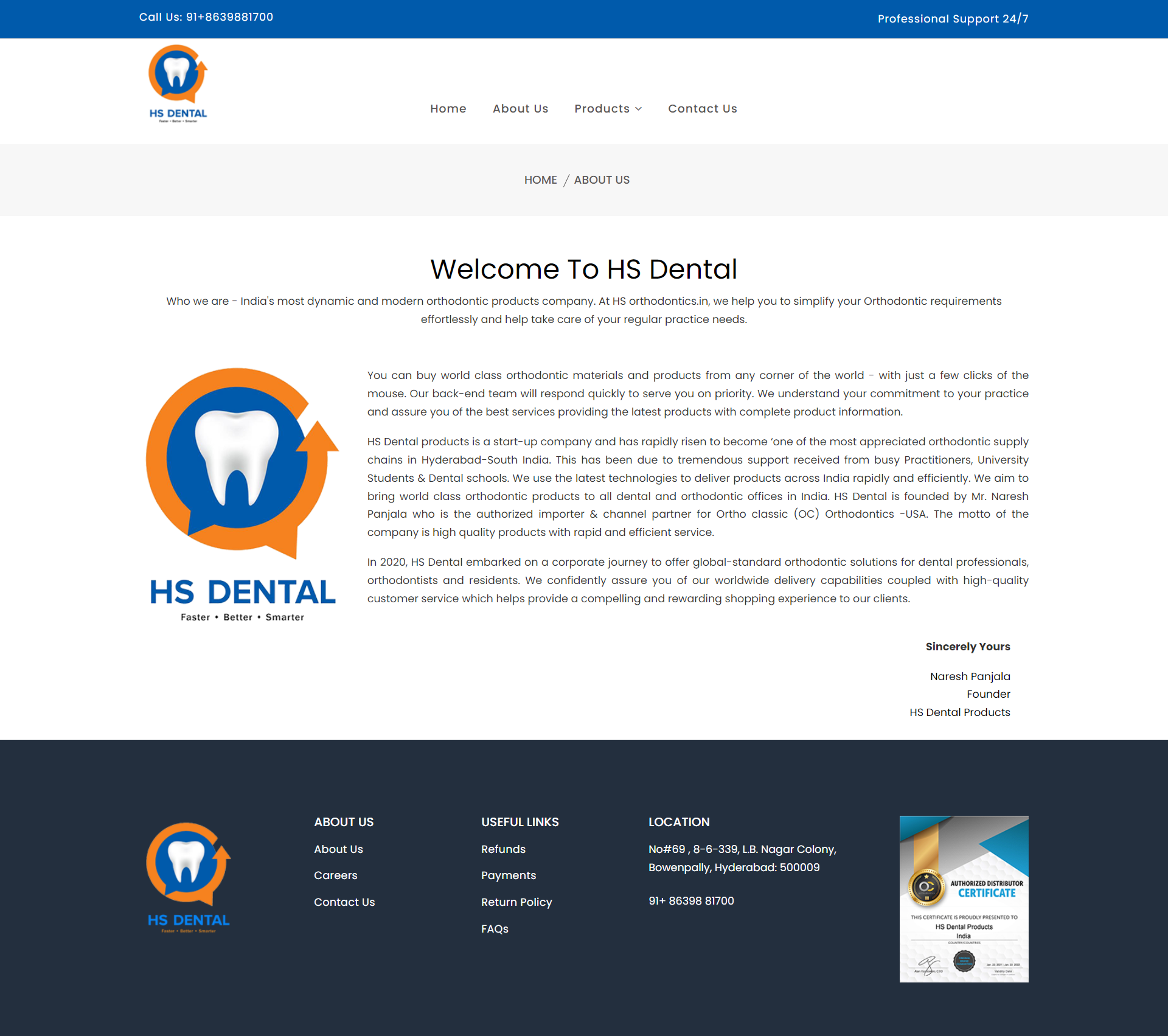 HS Dental products is a start-up company and has rapidly risen to become βone of the most appreciated orthodontic supply chains in Hyderabad-South India. This has been due to tremendous support received from busy Practitioners, University Students & Dental schools. We use the latest technologies to deliver products across India rapidly and efficiently. We aim to bring world class orthodontic products to all dental and orthodontic offices in India. HS Dental is founded by Mr. Naresh Panjala who is the authorized importer & channel partner for Ortho classic (OC) Orthodontics -USA. The motto of the company is high quality products with rapid and efficient service.