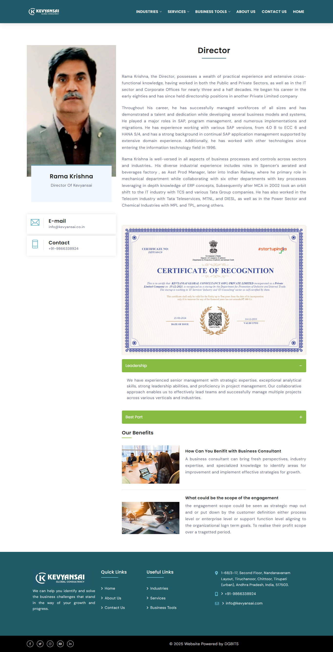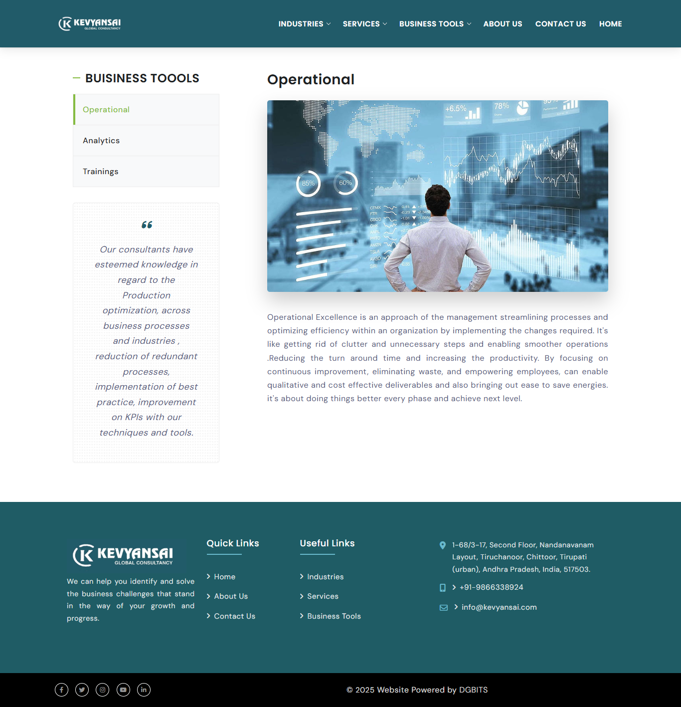 At Kevyan Sai, We have experienced senior management with strategic expertise, exceptional analytical skills, strong leadership abilities, and proficiency in project management. Our collaborative approach enables us to effectively lead teams and successfully manage multiple projects across various verticals and industries. Kevyan Sai known for great service and expertise in numerous industries. Their original website was outdated and slow to load, which was leading to a high bounce rate and lost business opportunities. Ultimately, it didn’t reflect their modern service offering. DGBITS was brought in to create a new digital strategy that showed their biggest assets as a business and provided a path to more conversions.