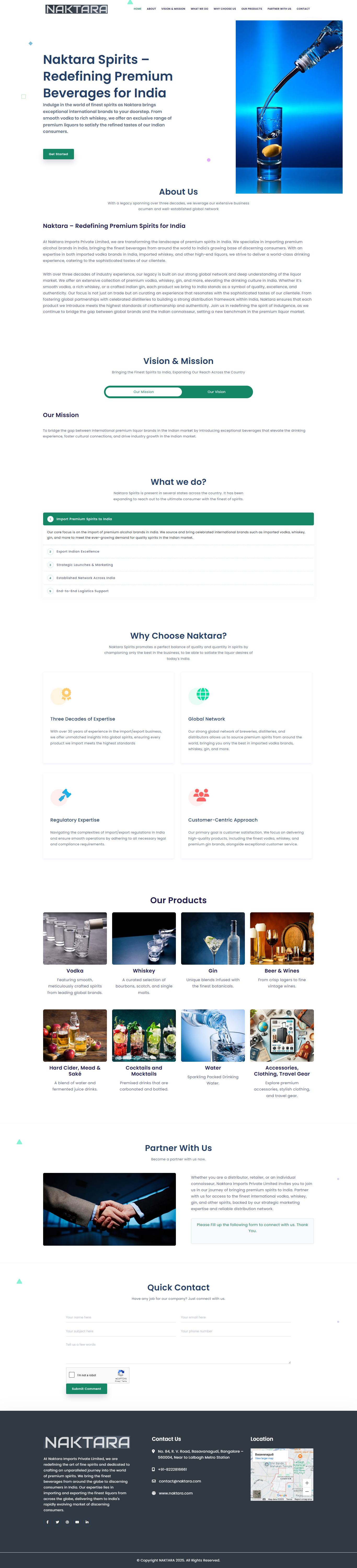 Overview NAKTARA, a rising brand in the alcoholic beverage industry, offers a premium range of whiskey and vodka and is currently operating in Hyderabad and Secunderabad. They approached DGBITS to create a bold, modern digital presence to represent their growing portfolio and support their regional expansion. In addition to showcasing their products, they needed a responsive website, fresh branding, and a strategic SEO push to gain market attention.