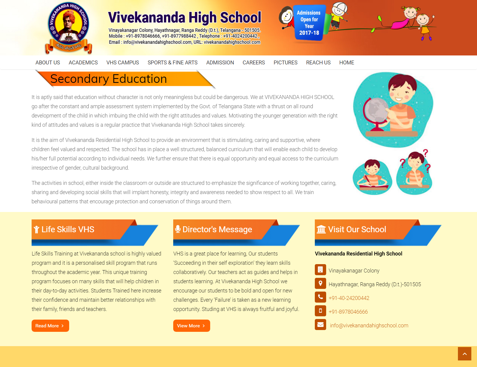 How We Helped We worked with Vivekananda Residential High School to built a new responsive website. The website allows their staff to update the site by themselves when necessary. The types of content they can update are things like Admissions Page, Testimonials, Contact details, Location details, Director Message and much more. We designed VRHS website using the Mobile First technique and progressive enhancement, which make it accessible to a wide range of users. Currently it supports all tablets, desktops, Laptops and mobile smart phones. Congratulations to Vivekananda Residential High School on their new website!. The website does a great job in promoting the Vivekananda School to global audience.