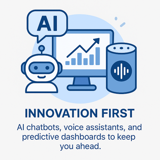 Innovation First – AI chatbots, voice assistants, and predictive dashboards to keep you ahead.